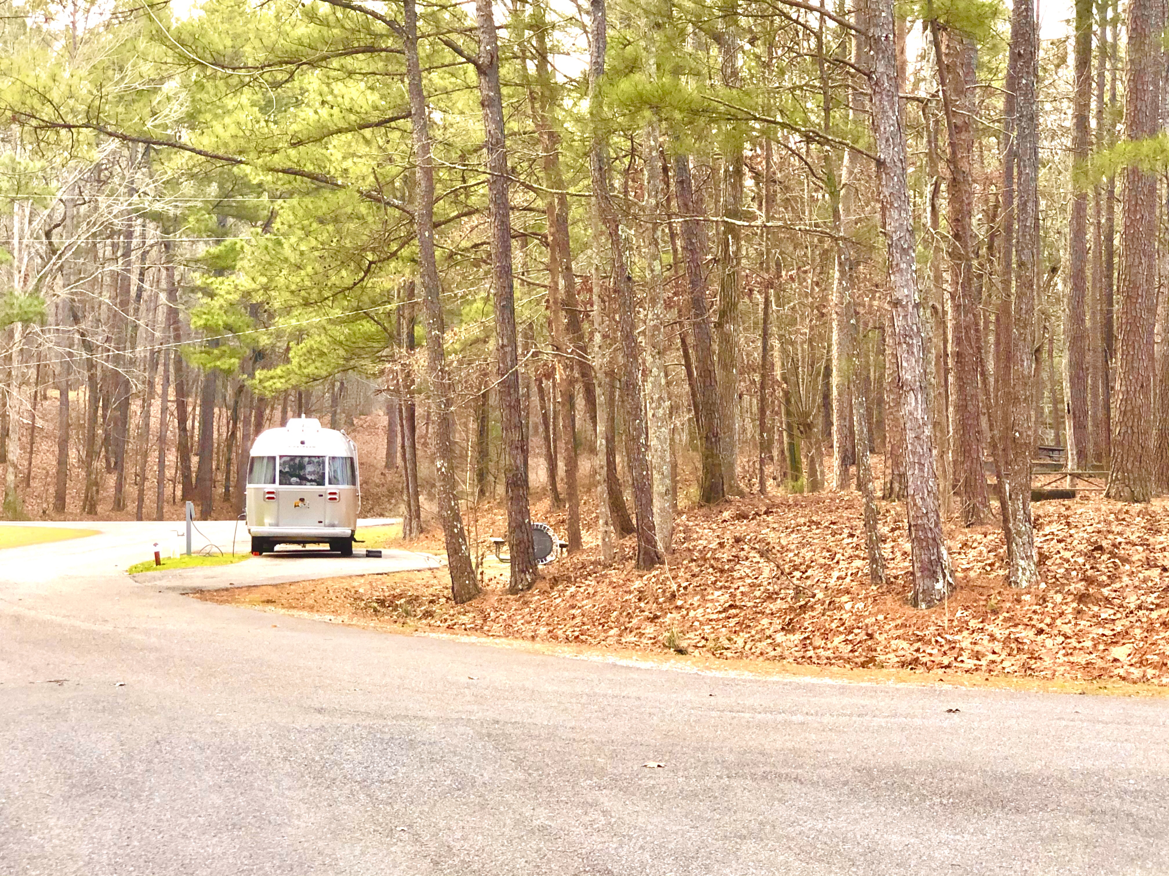We slipped away from home in early January, going west through Asheville in the early light then through a brief snowstorm that stopped just as we passed Bryson City and headed down the Nantahala. Passing through Andrews and Murphy to Cleveland TN was a lovely ride before we picked up the interstate through Chattanooga and coasted all the way to Birmingham where there’s a huge State Park called Oak Mountain. Owing to the still cold weather we had our pick of campsites and passed the evening almost alone in the quiet woods.